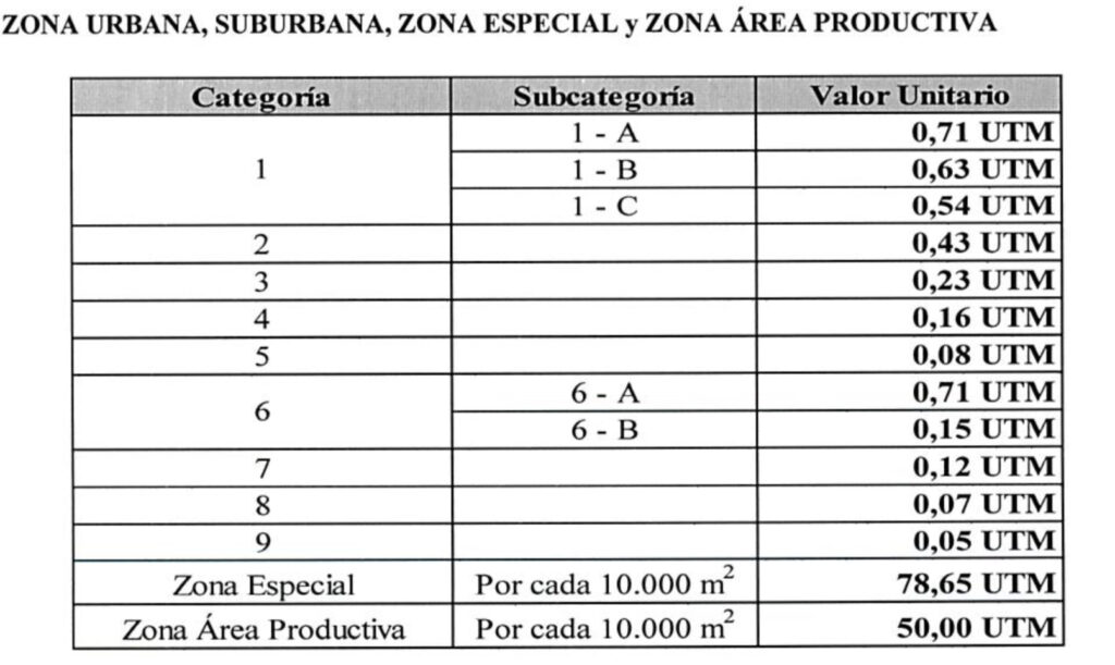 Se establece un Derecho De Inspección – Cuerpo Bomberos Voluntarios que será abonado por única vez, al momento de la solicitud de habilitación de actividades de comercios, servicios e industrias, de acuerdo a los siguientes parámetros: el presente Derecho se calculará a razón de 0,10 UTM por metros cuadrados (m²) de superficie cubierta, estableciéndose un monto mínimo de 3 UTM y un monto máximo de: